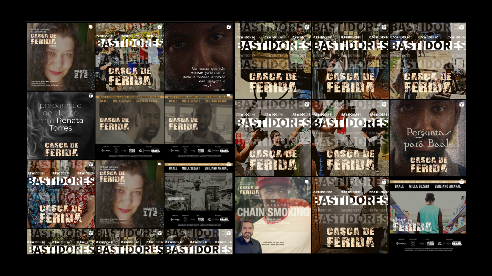 Entre 2024 e início de 2025, atuei no desenvolvimento da identidade visual para as redes sociais do projeto, estruturando uma linha editorial composta por cards estáticos, motions e peças audiovisuais voltadas à divulgação, aquecimento e lançamento do filme. O trabalho incluiu entrevistas com a equipe criativa, conteúdos de bastidores, referências conceituais e materiais de preparação do público para a estreia.