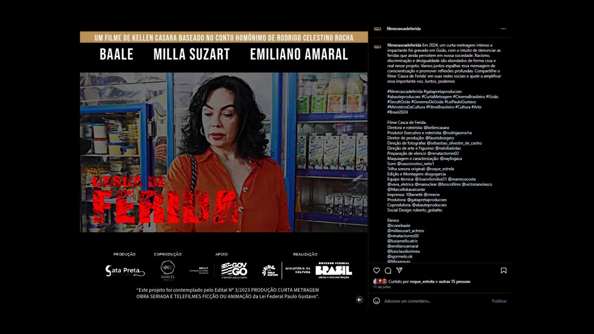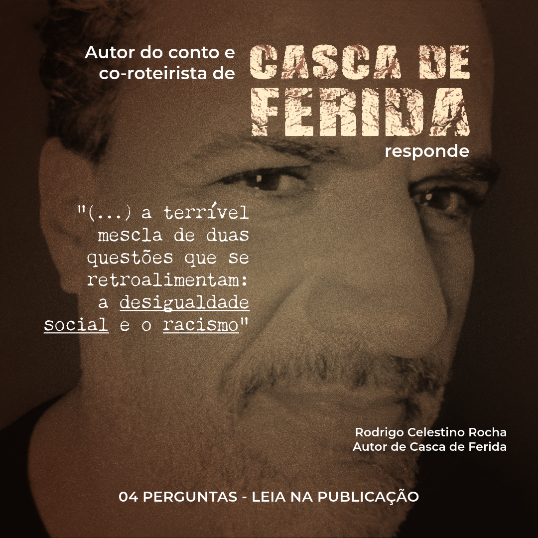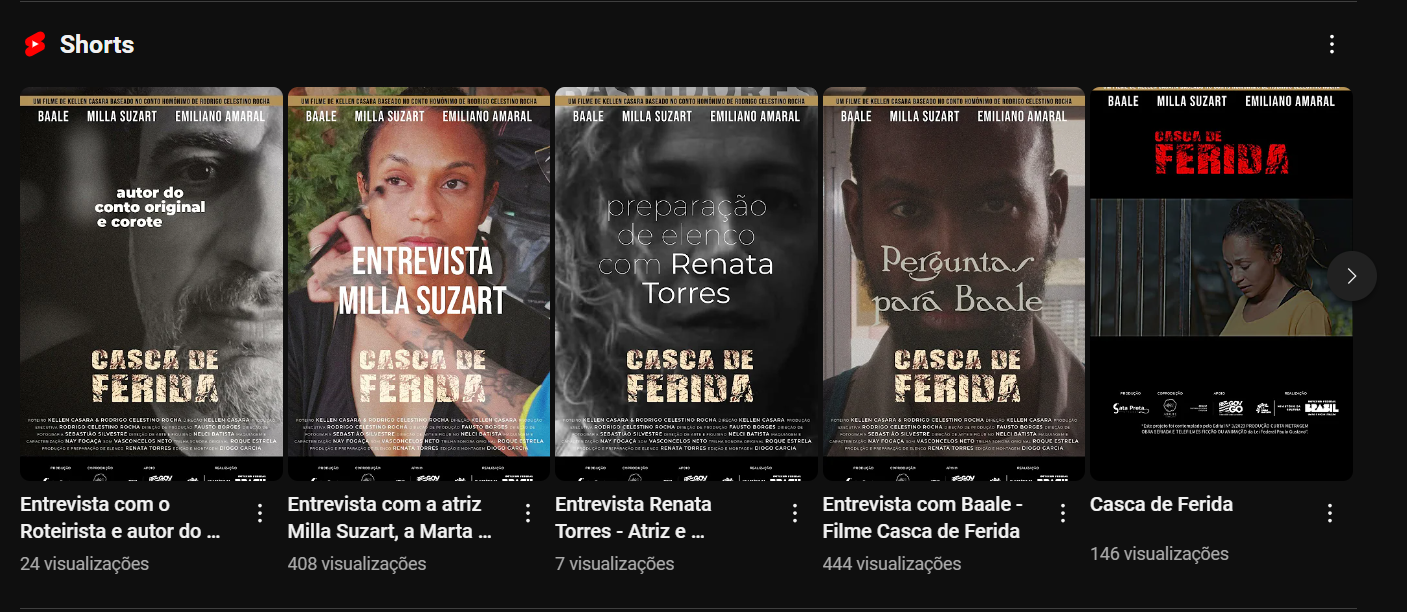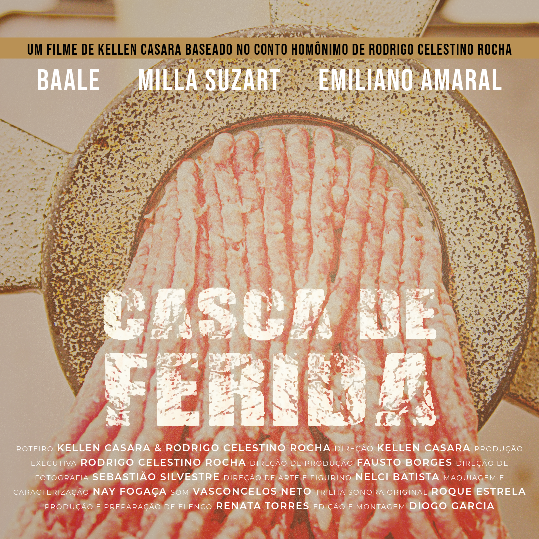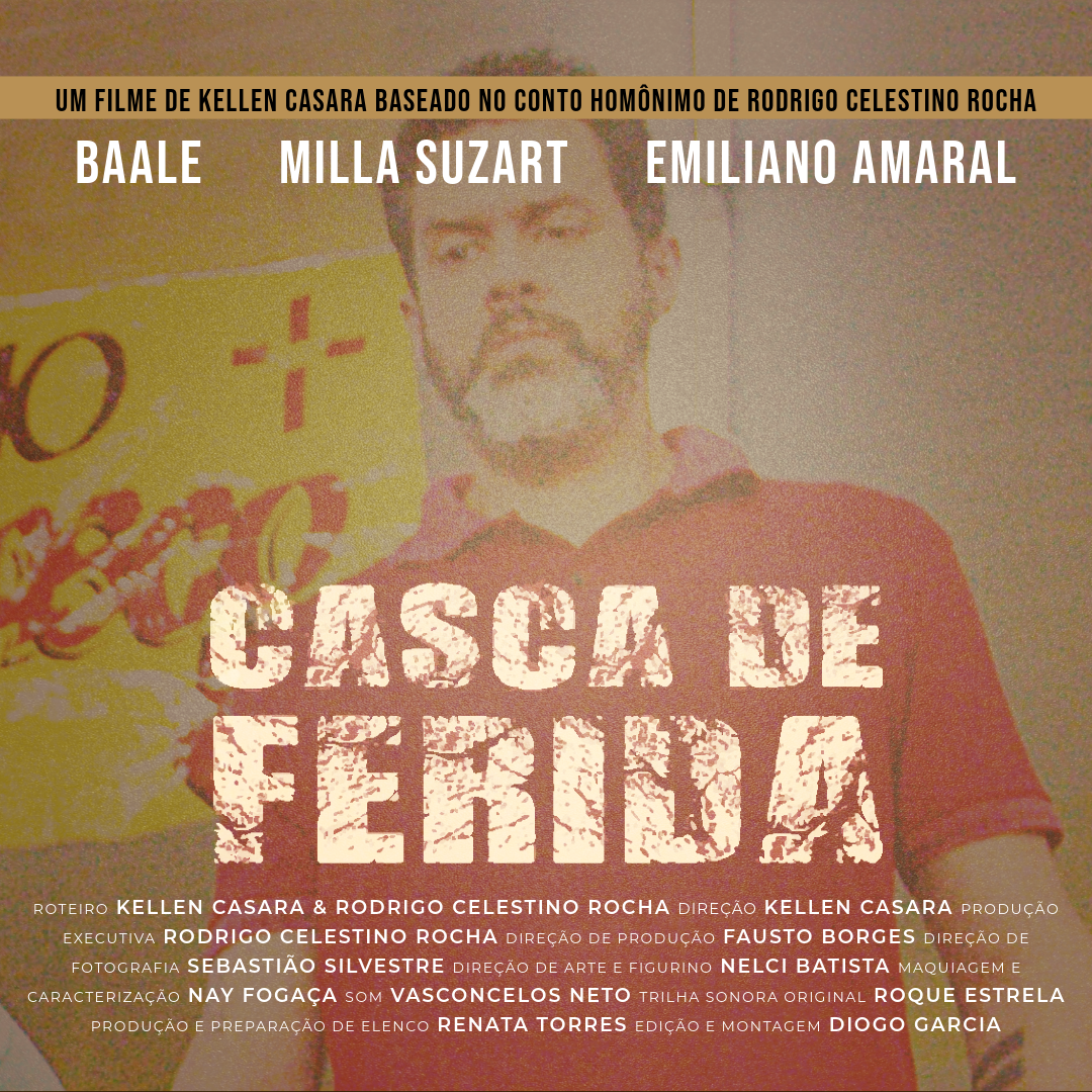 Casca de Ferida é um curta-metragem que aborda temas como pobreza, preconceito e racismo, construindo uma narrativa sensível e contundente sobre desigualdades sociais no Brasil. Produzido pelas Gata Preta Produções e Abaute Produções, o filme tem direção de Kellen Cassara, roteiro de Rodrigo Celestino Rocha, trilha sonora original de Roque Estrela e elenco formado por Baale, Milla Suzart e Emiliano Amaral.
